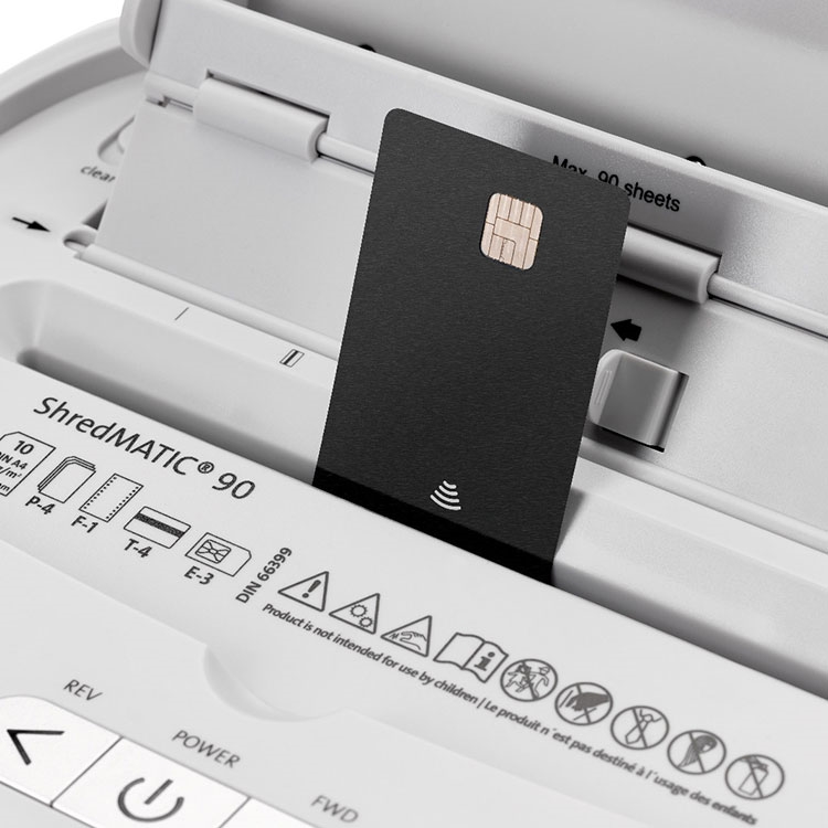 Ny model – meget nem maskine, hvor du blot placerer en stak papir (op til 90 ark), som maskinen så selv makulerer uden yderligere betjening. Sikkerhedsniveuaet er P-4 (altså godkendt til makulering af dokumenter med personfølsomme oplysninger).